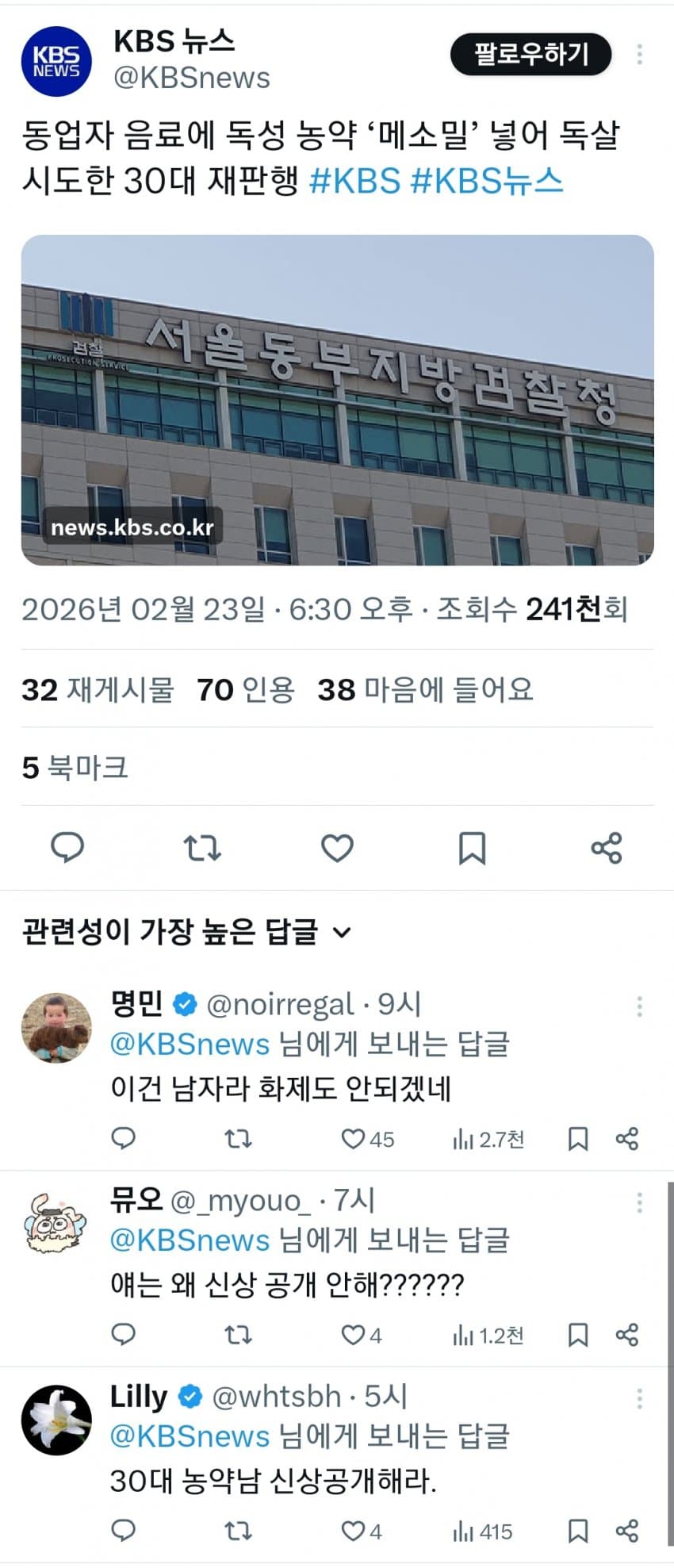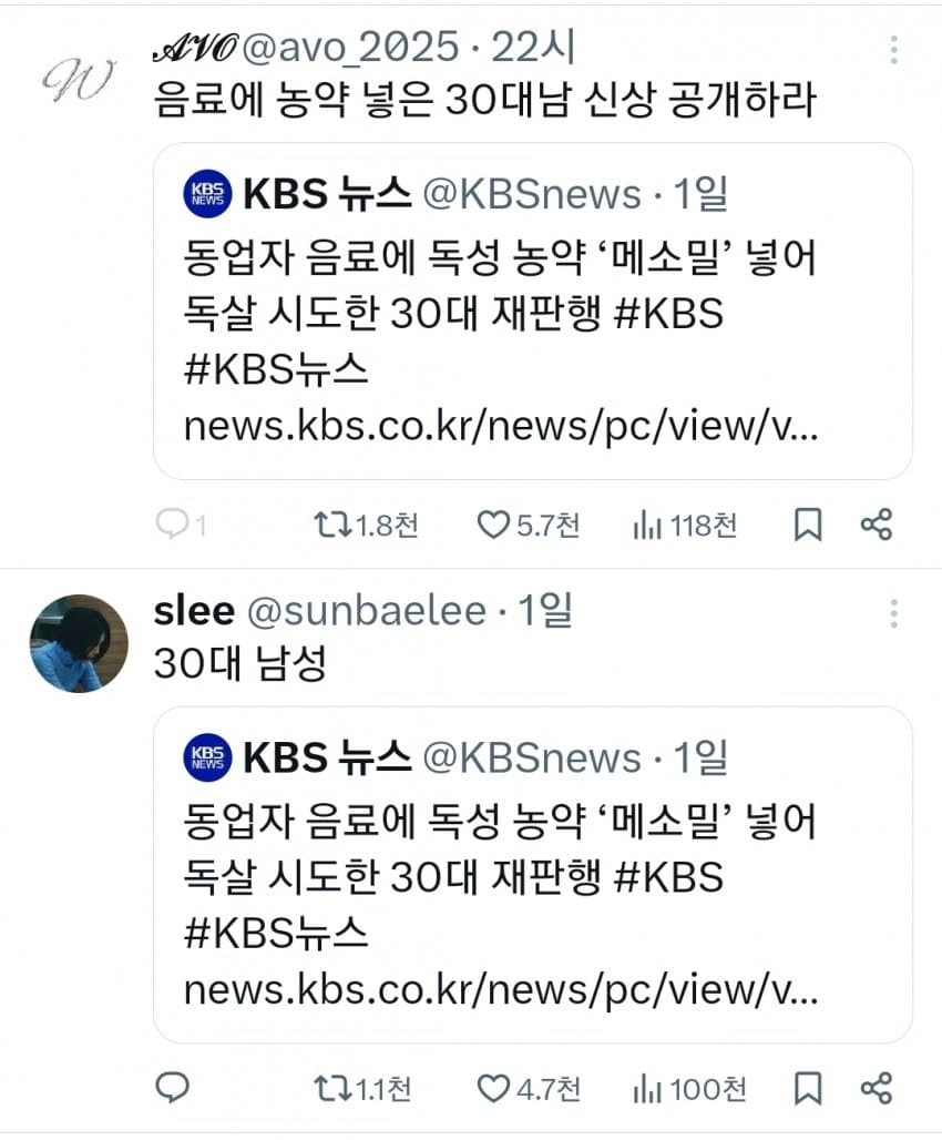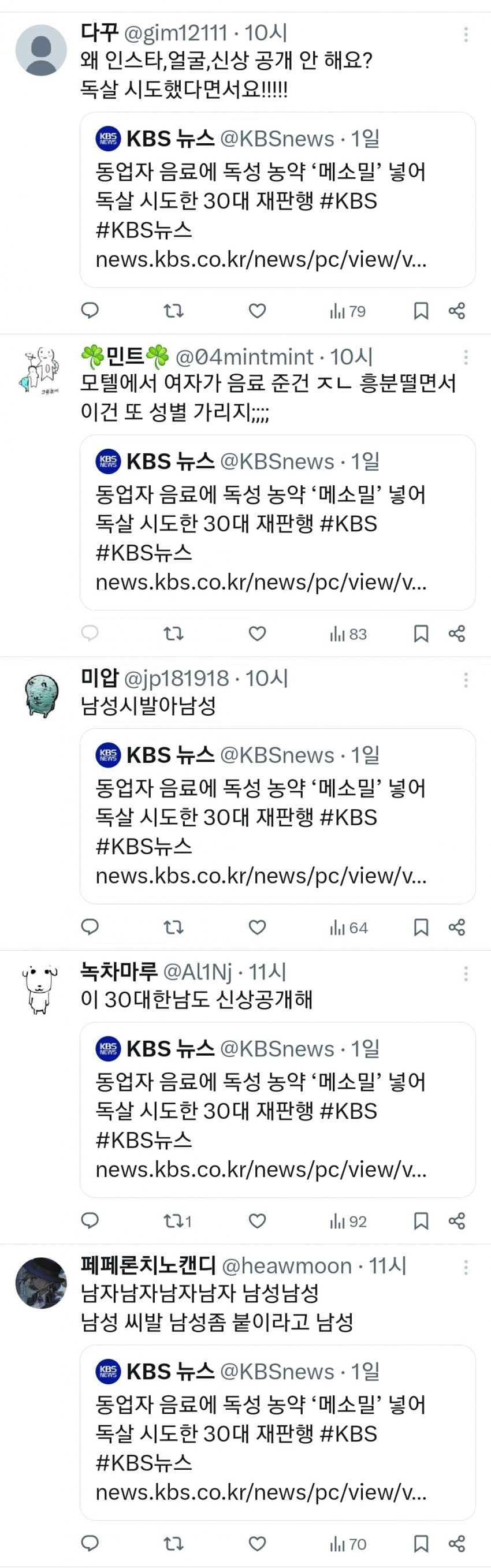 동료를 독살하려 한놈 저놈 신상공개해라 완전 악질이네