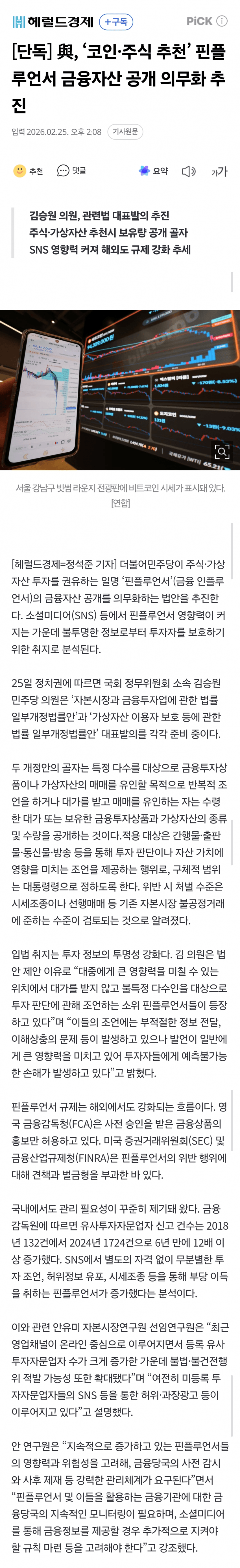 슈카는 맨날 생방중에 지 입으로 얘기하는데 뭐적금 제일 많이 들어가있다~ 현대차밖에 가진거 없다~제도권에 있던 사람이 조사받는거 지 눈으로 직접 보고 썰까지 풀어주는 사람이 선행매매할 확률은 낮을거같고 팔로워 1000명~10만명 정도되는 중소형 인플루언서들이 더 많이 잡힐거같은데