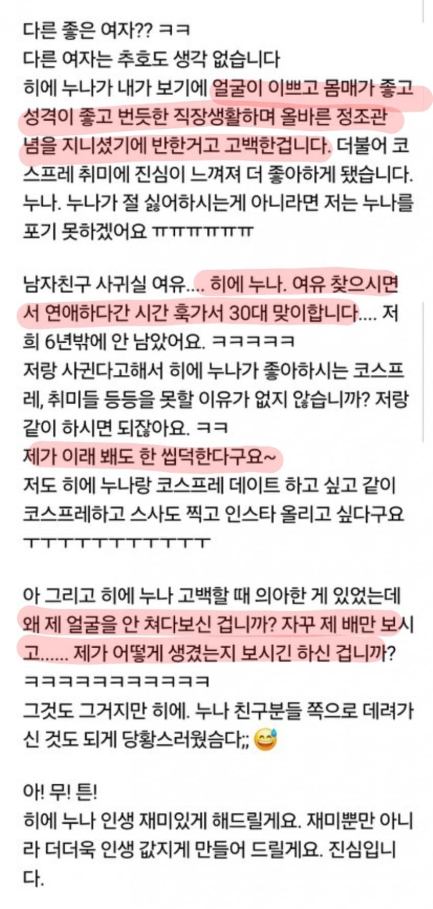 "몸매 좋고 올바른 정조관념을 가져서 고백했습니다"