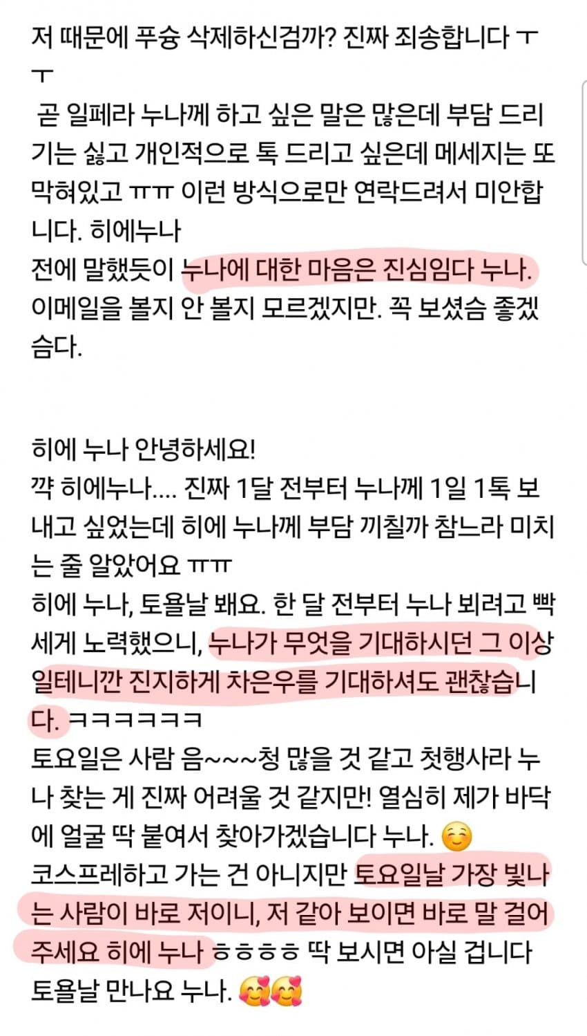 "1일 1톡 보내고 싶은거 참느라 미치는줄 알았슴다"