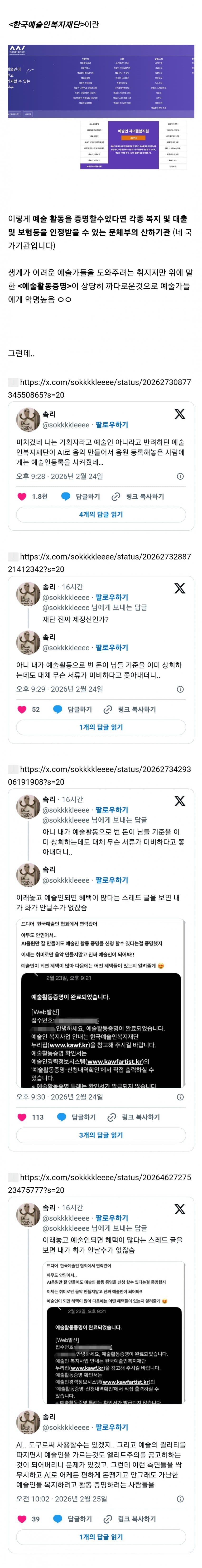 증거라고 가져온 게 익명의 스레드 유저가 AI로 예술인 등록했다는 글임?