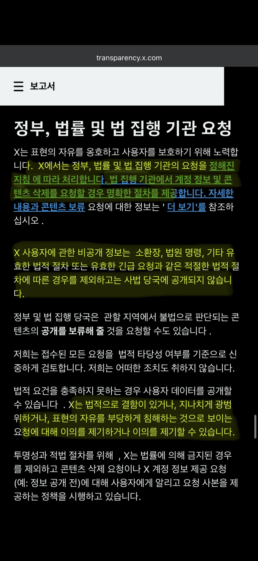 법적 요구 건수는 이전 보고 기간 대비 174% 증가