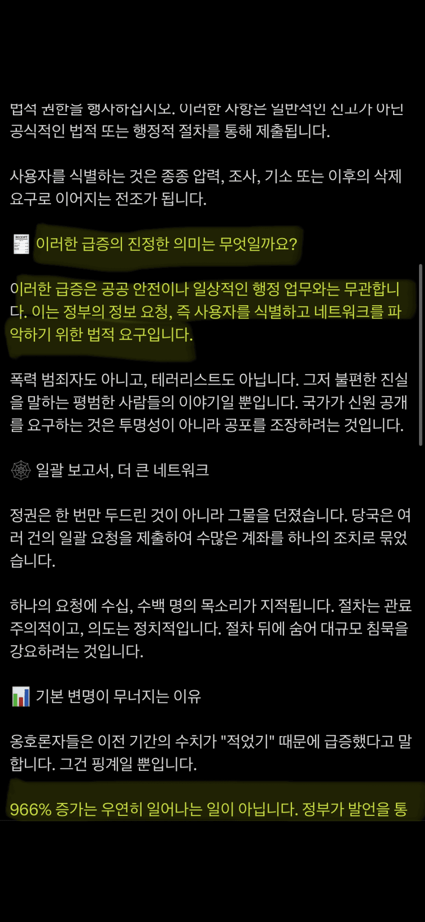 이전 투명성 보고서에 비해 966% 증가한 계정 수 보고