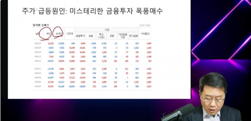 코스피 6,000] 시총 사상 첫 5천조원 돌파연합뉴스 26.02.25코스피, 사상 첫 5000선 돌파 시총 4200조 시대2026.01.27외국인 16兆 투매, 동학개미 '줍줍'…수급 쏠림에 커지는 '변동성'2026.02.2726일 한국거래소 집계에 따르면 최근 한 달 동안 외국인은 코스피 시장에서 16조 3885억 원을 순매도같은 기간 개인은 3조 6234억 원, 기관은 10조 9885억 원을 순매수코스피 시가총액은 800조원 늘었는데이거 돈이 어디서 온 거임???