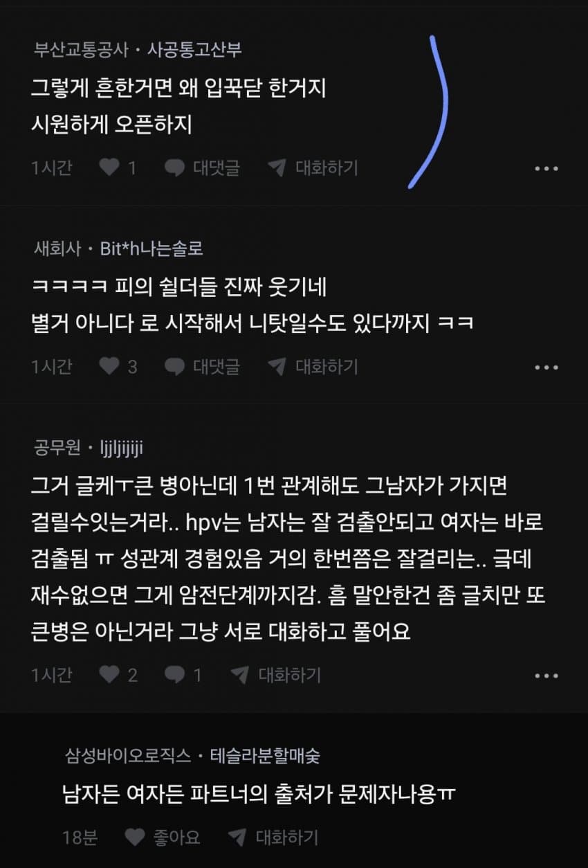 남녀80퍼는 평생 1번이상걸렸다는댓글과 내가하고싶은말 해주는 대웅