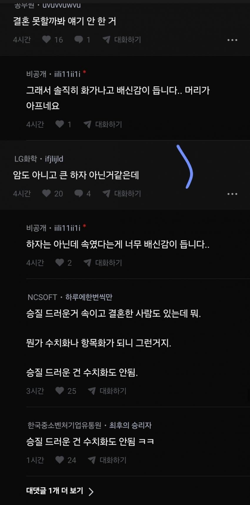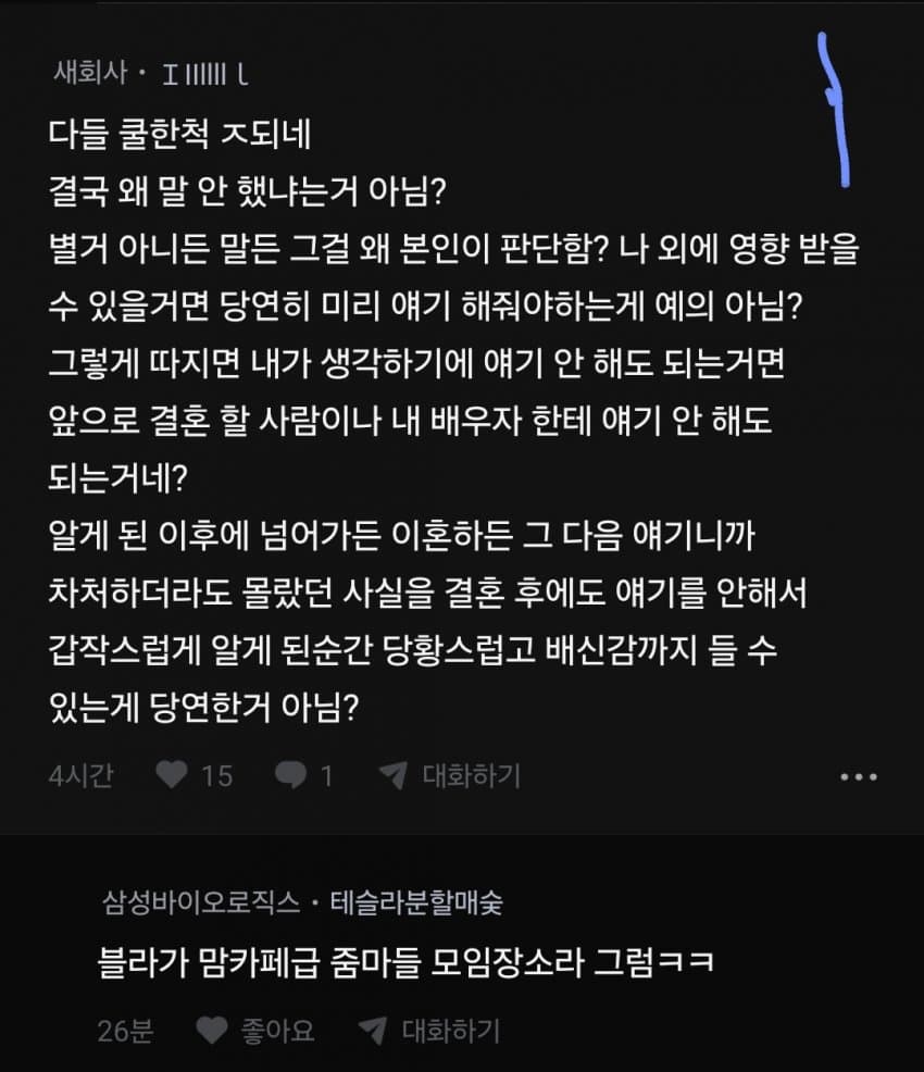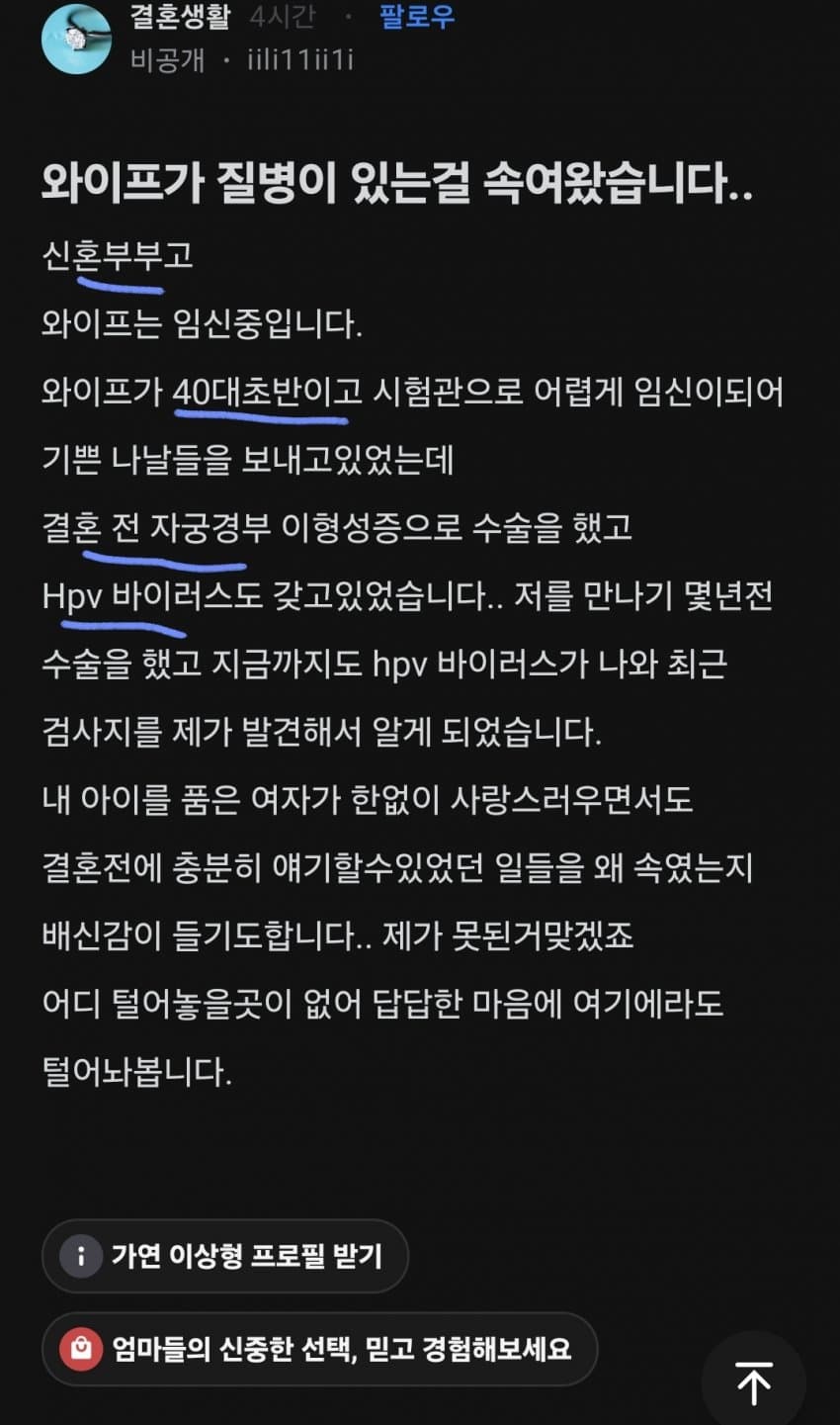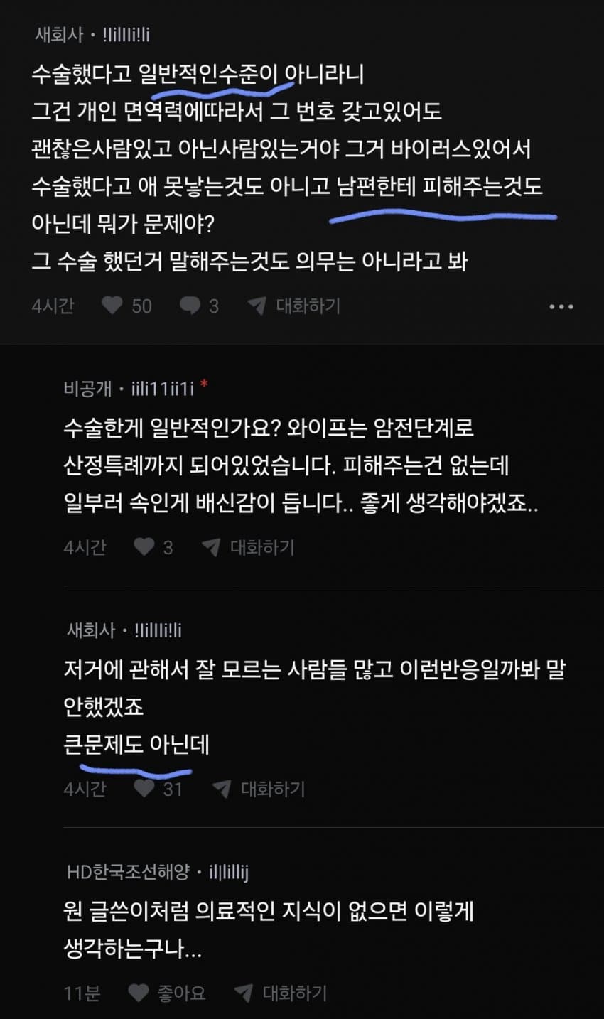 40대 신혼???이고 쓰니만나기절에 수술한거속이고 결혼했는글 진짜 '질'병이네 ㄷㄷ