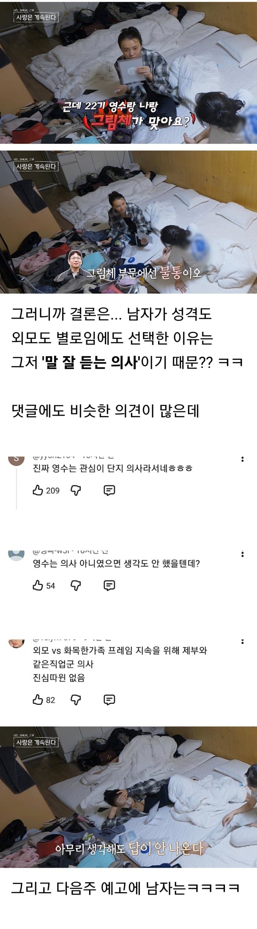 의사들은 공부만 하다보니까 저런거에 약하지 툭치면 손자까지 낳는데 심지어 상대는 의사니까 좋은거고 어떻게든 결혼하려고 스탑럴커짓 하는데 의사들이 알겠냐