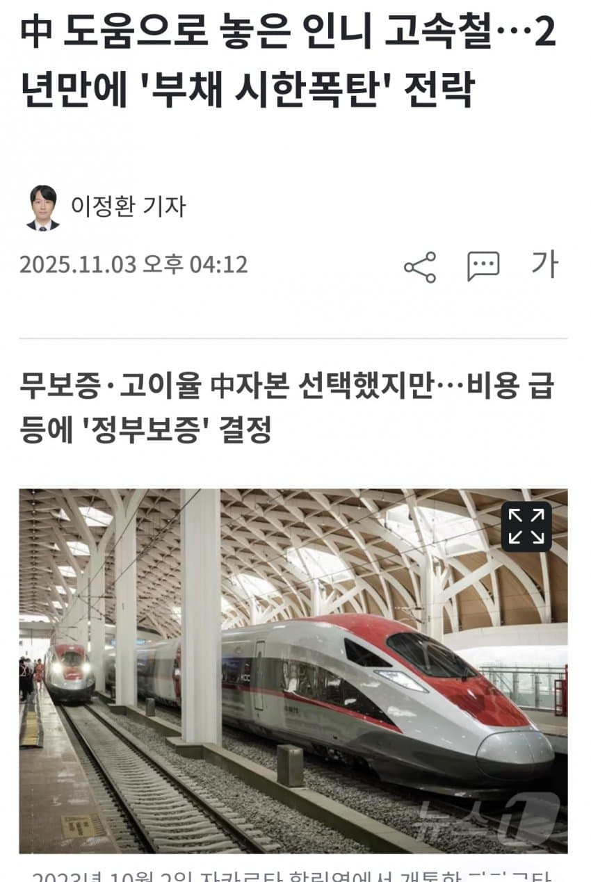 자바섬 마저도 지구온난화로 물에 잠길수있대서 보르네오섬으로 이주 준비 중인데 판에 고속철도 개발을 하려고 든 것.