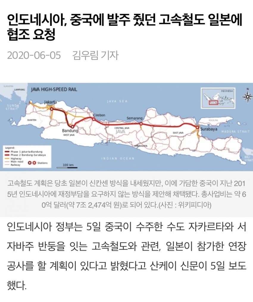 갑자기 반둥-수라바야(인니 제2도시) 연장 노선은 일본한테 해달라고 던졌다.