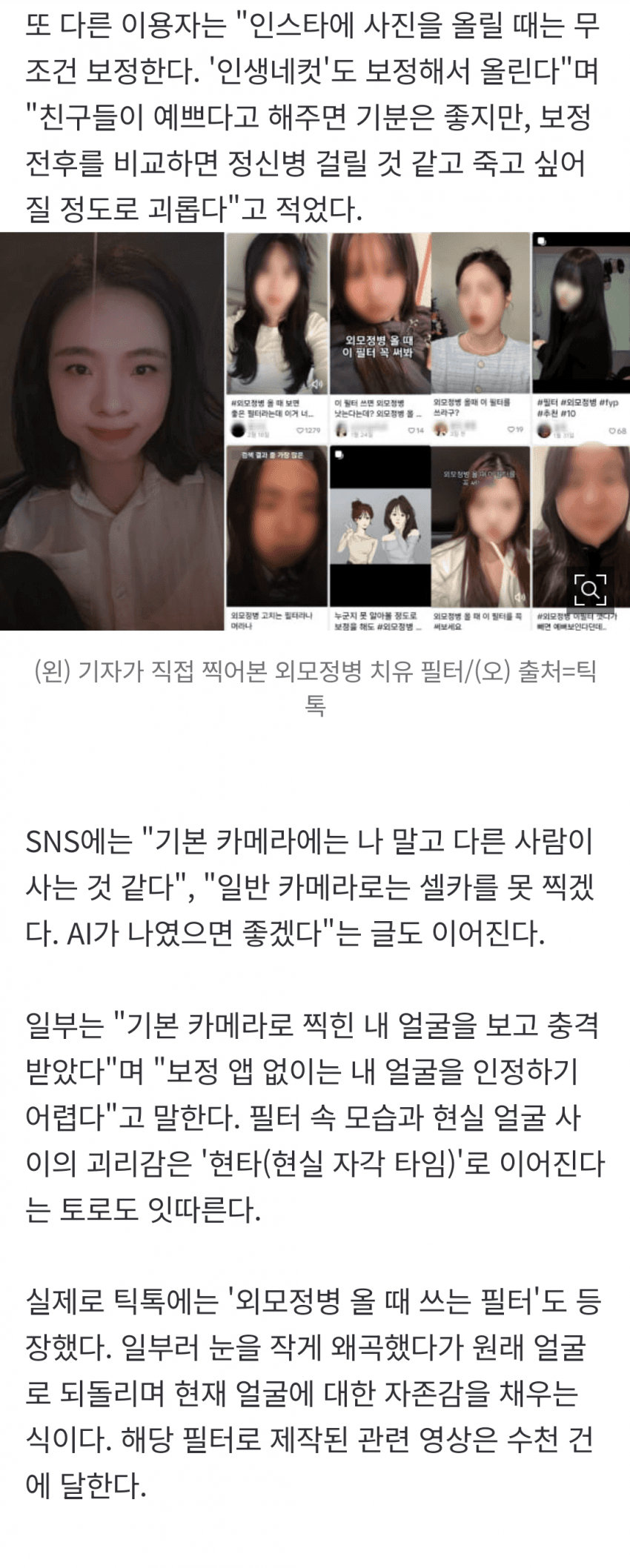 그냥 생긴대루 살자 우리 보정 해도 내 얼굴이 바뀌는 게 아닌데 뭐 .