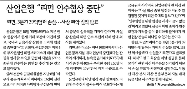 결국 6일뒤, 700조원 규모의 리먼은 인류 역사상 최대 파산액 기록을 갈아치우며 역사속으로 사라졌다.