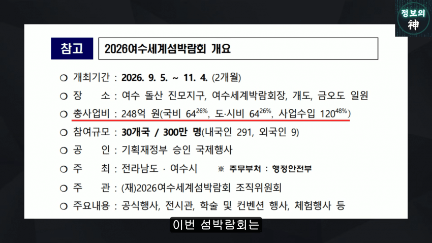 어떤 미친놈이 여수까지 내려가 박람회 봄?ㅋㅋ지방 박람회나 대회 이런건 대부분 지자체 예산으로 티켓 구매해서 도민들에게 꽁으로 뿌림 사실상 국가예산임