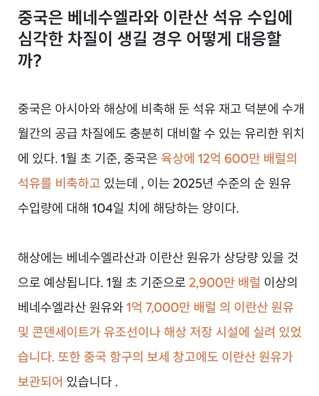 뼈아프겠지만 그래도 러시아나 사우디꺼 사면 문제될건 없잖음당장 수급 문제는 비축해논거 풀면 그만이고