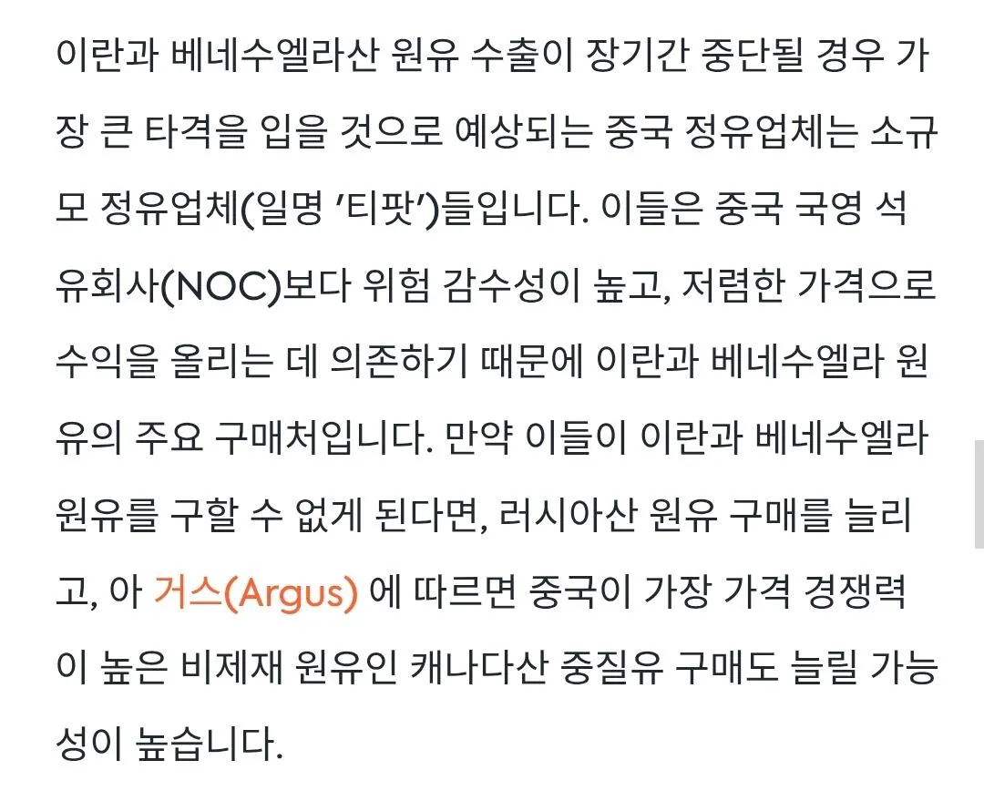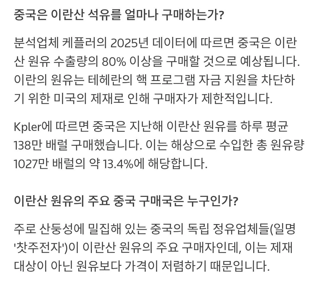 중공놈들 러, 베, 이란이랑 찐친인척 하며 석유 싸게 구매해서 정유해서 각종 석유제품 덤핑으로 팔아서 지금 석유 구매 가격이 높은 우리 나라 석유화학업계들 고사 직전이잖아, 하여간 중공 공산당 놈들 북괴와 동맹인 우리 제2 주적인거는 물론이고 사사건건 우리에게 민폐임. 고립주의로 갈 거 같던 트럼프가 중공 죽이기는 미 정치권의 제1목표라 오히려 베네, 이란 등 조지고 우크전도 예상외로 계속 진행되게 두어 러시아까지 코너로 몰며 중공에 러시아 석유 금수 압박하고 아주 잘 하고 있음. 중공 죽이기 큰 그림은 반도체 뿐 아니라 다방면에서 미국이 진행 중임. 나이스 미국