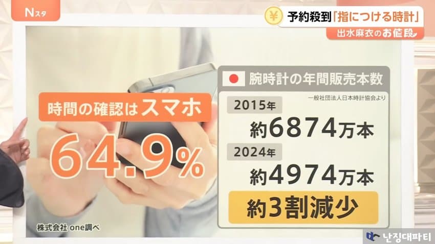 일본 내 조사에 따르면 이제 시간 확인을 할 때 스마트폰을 이용한다는 사람은 64.9%에 이르고