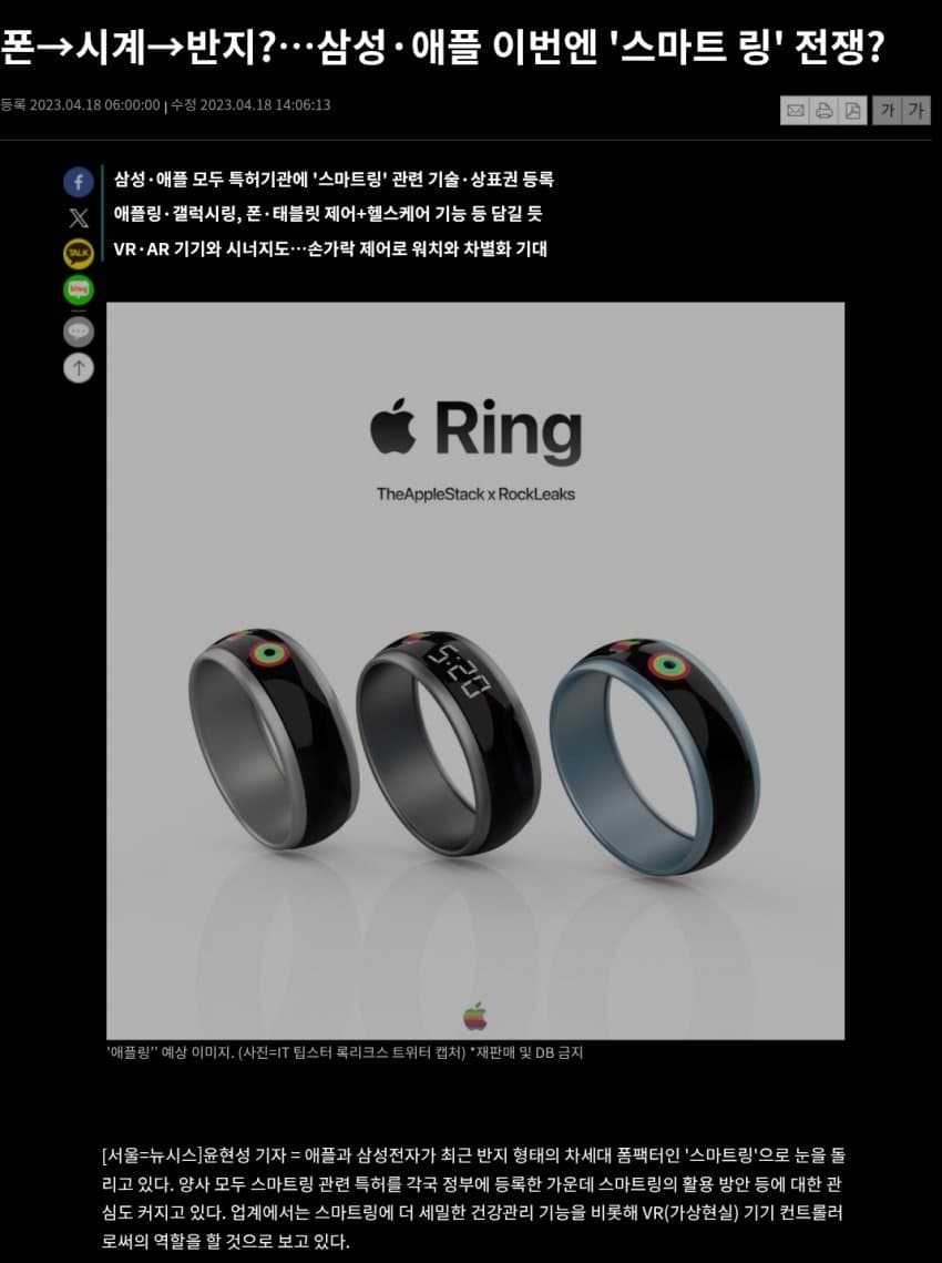 참고로 이미 2023년에 삼성과 애플은 이런 스마트링을 단순 구상하는 수준을 넘어 상표권까지 등록한 상태였고