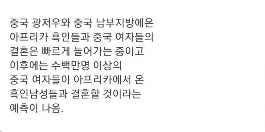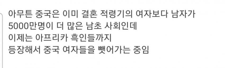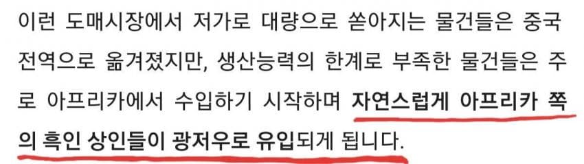 흑인이 많은 이유는 중국 일대일로가 아프리카에 많이 들어가있기때문이지 ㅋ아프리카는 지금 내전중이고 러시아, 중국 용병들이 지금 나라를 지켜(?) 주면서 건사하는 곳이 많지.생각보다 흑인들은 중러에 호의적이라고,지금 중국으로 일자리 구하러 가는 인종들이 흙흙이들, 인도카래 등등 저개발이아닌 노개발국에서 많이들 가고있지