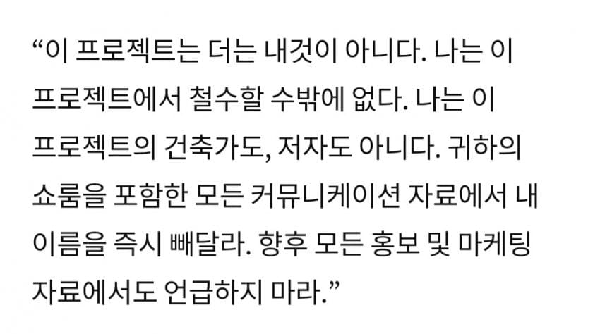 건축가는 건물보고 개빡쳐서 걍 이름빼달라 함