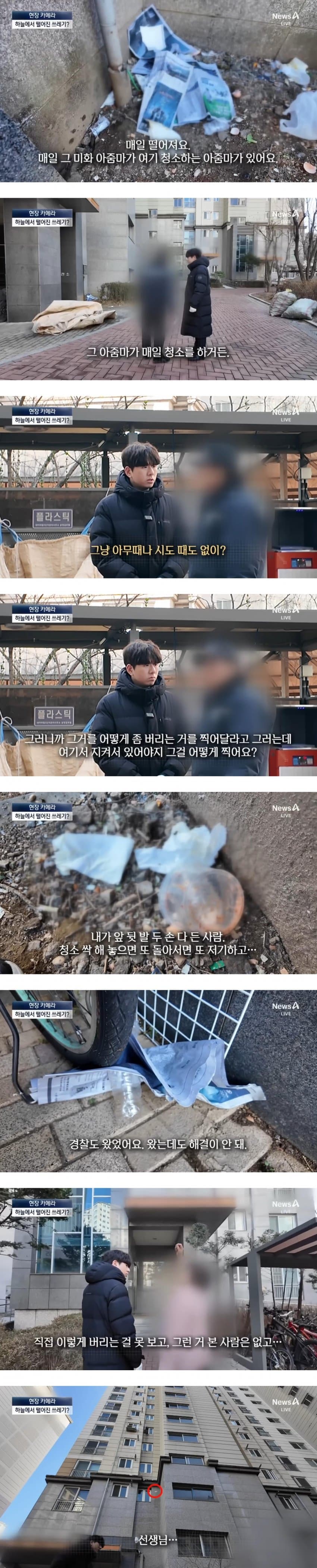 우리 아파트에도 저런 거 있어서 앞 놀이터에 카메라 설치해놓고 잡았는데잡고 보니 치매노인이었다우리 난간에도 떨어진 게 좀 있어서 잡히면 청소비용 청구하겠다고 이를 갈고 있었는데딸인지 며느리인지가 울면서 사과하는데 뭐라 할 수가 있어야지