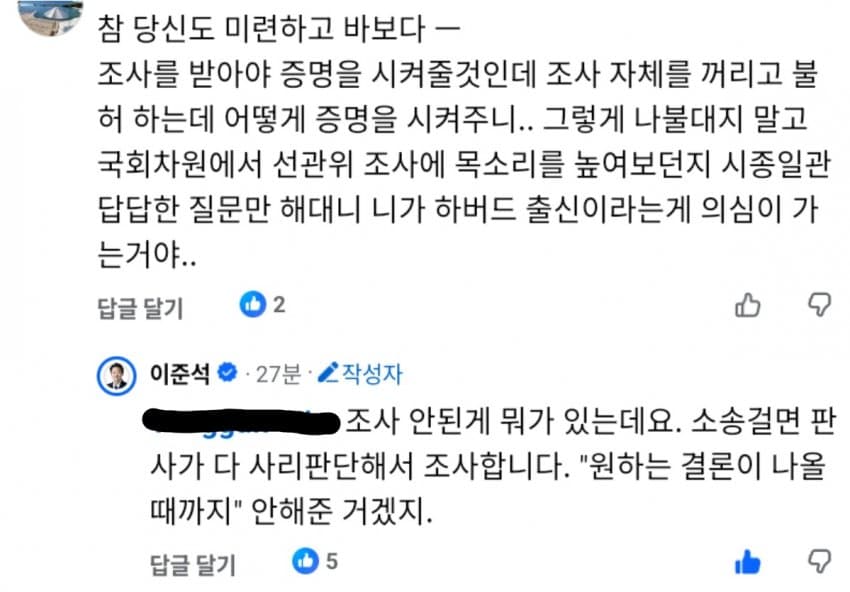 근데 국회의원 씩이나 되가지고 국민들이 의혹을 제기하면 살펴보는 시늉이라도 해야지 왜 저렇게 피의 쉴드를 치는거냐???