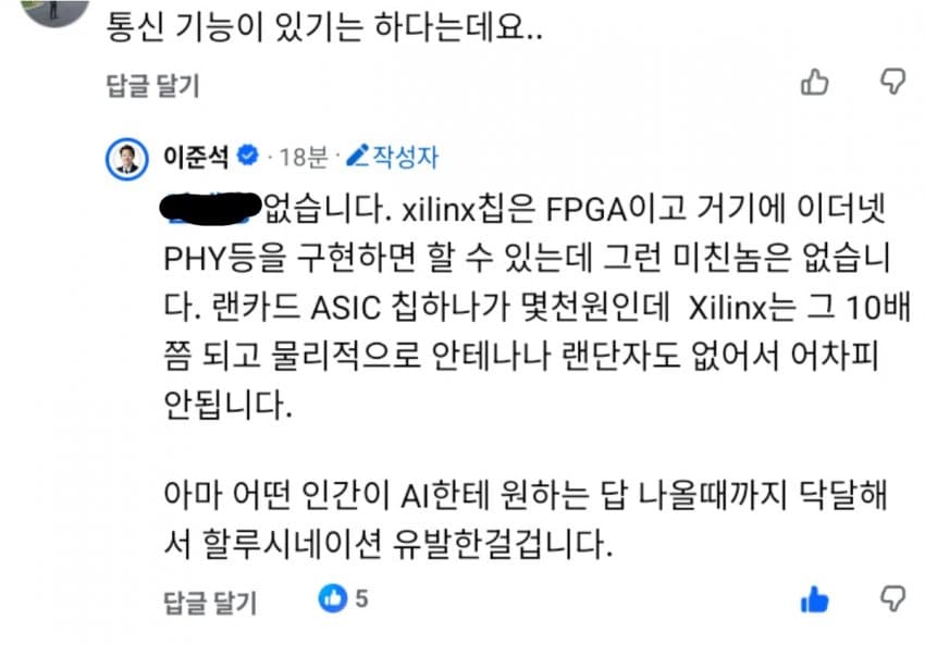 보통 저런 임베디드 기기는 MPU, MCU에 통신기능 따로 있고 XILINX FPGA칩은 하드웨어로 특정 기능을 수행하기 위한 회로에만 들어가는데 준석이 공부한거 맞음?