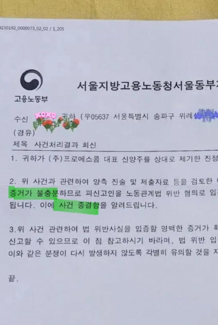 퇴사하기전에 증거 모을 생각도 하지않고 그냥 이렇게 신고하고 여기저기 징징거리면 되겠지 싶었나?