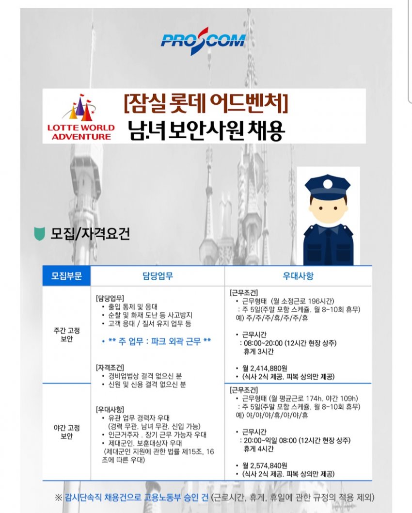일반적으로 그렇게 생각하는데 몇시에 어디 어디문 잠구고 자파라 설치하고 순찰코스많고 롯데월드내 밤샘 공사작업자들 안전모 착용 주의주고 일일히 다 사진찍어서 시간맞춰 톡에 보고해야하고 특이사항 발견 못하거나 문 잠구거나 여는 시간이 확실하게 정해진 구역 1~2분 늦어지면 삿대질에 질책당하고 할거 많음. 즉 근무지 잘못걸림