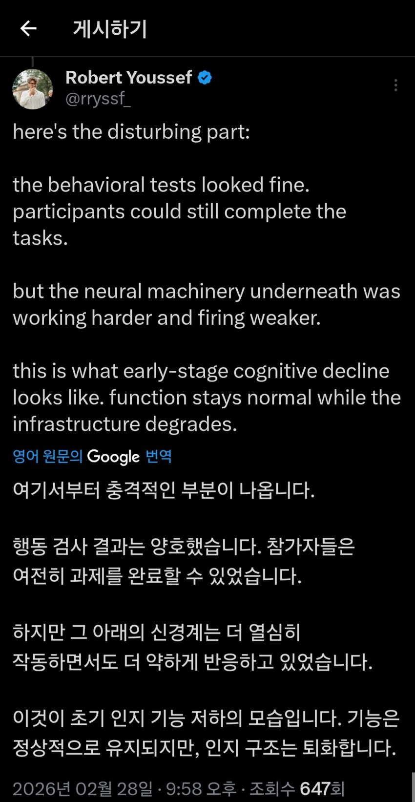 그럼 노력대비 산출이 좋은 사람들은 다 손상입나. 저지능자의 지능이 제일 건강하겠네