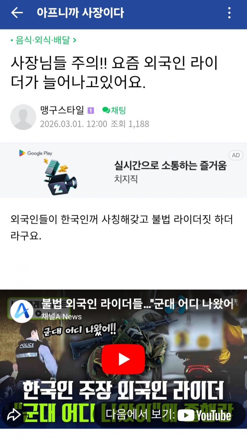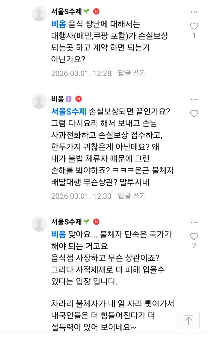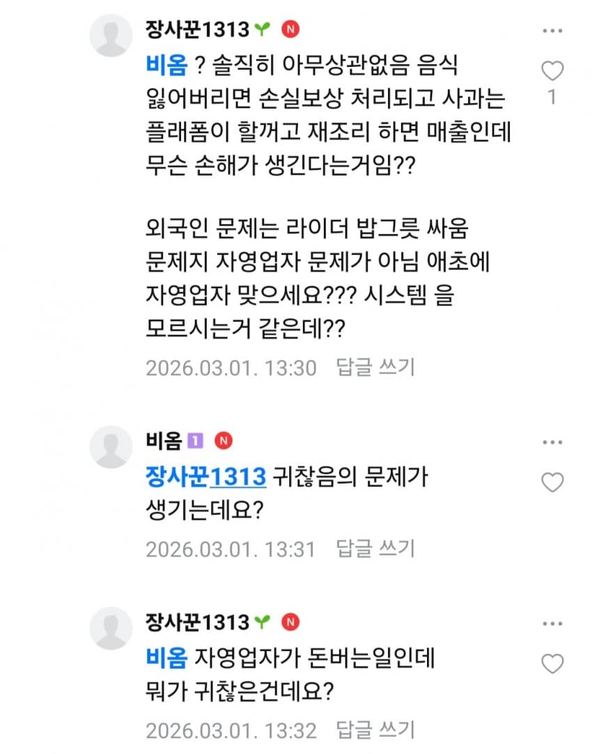저러다 어떤 또라이가 음식물에 독극물 테러하고 알빠노하고 도망치면 그가게 처망하는건대 자영업자 대가리 아직 꽃밭이내