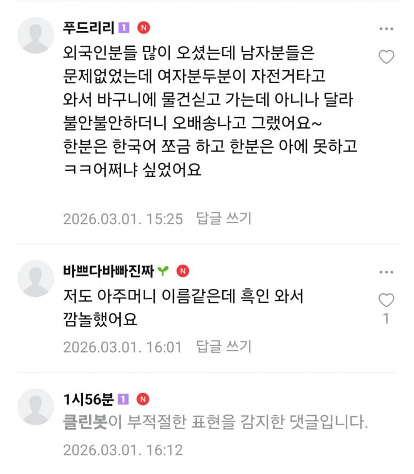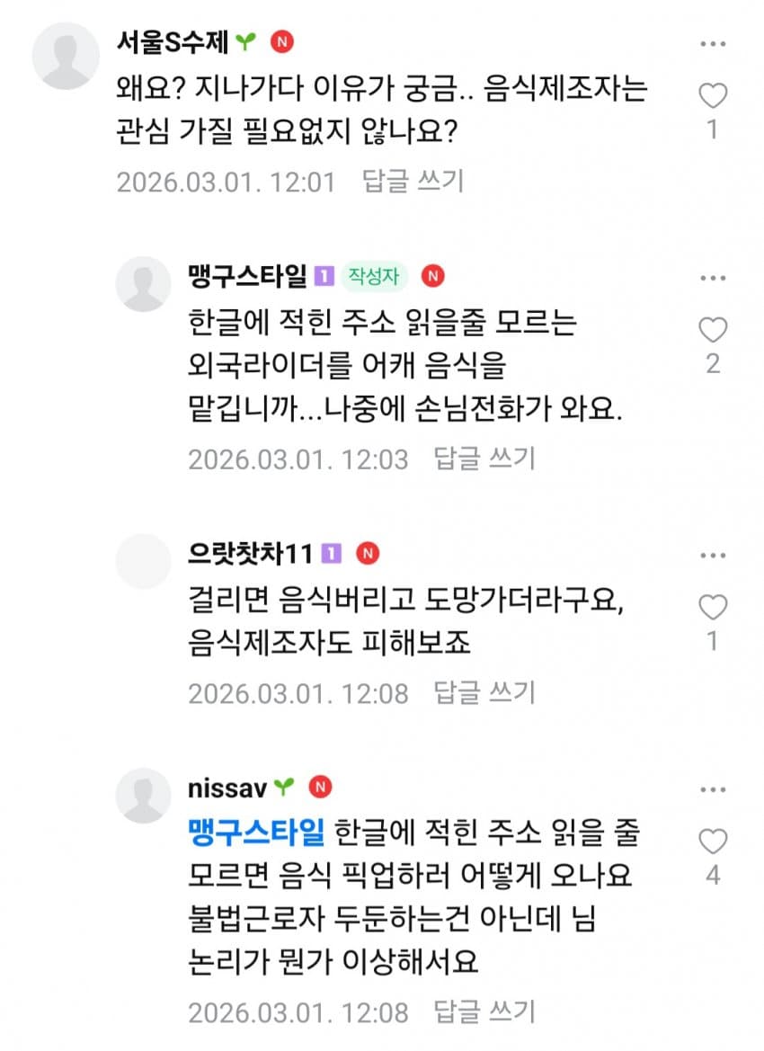 하다하다 동남아 뚜벅이년도 배달하더라 ㅋㅋㅋㅋㅋㅋㅋㅋㅋ 지도 볼줄모르고 한글도 똑바로못읽어서 길가에 서서 울먹이고있길래 내가 길찾아다줌