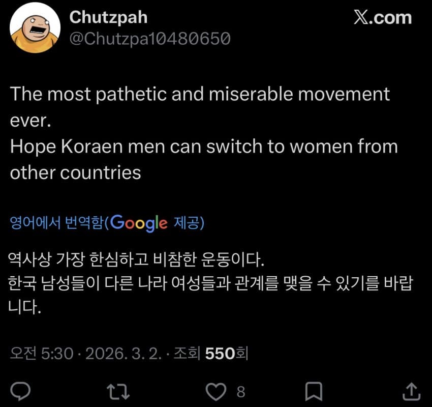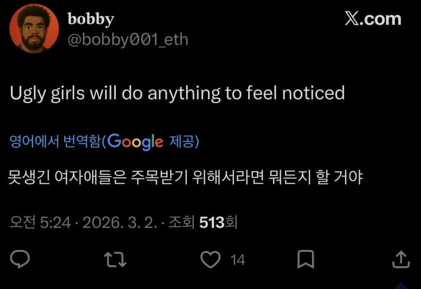 이게 4B운동 펼치는 페미들의 현실이구나도태된 게 억울해서 남혐중 ㅋㅋㅋㅋ