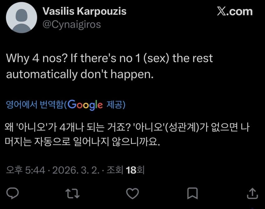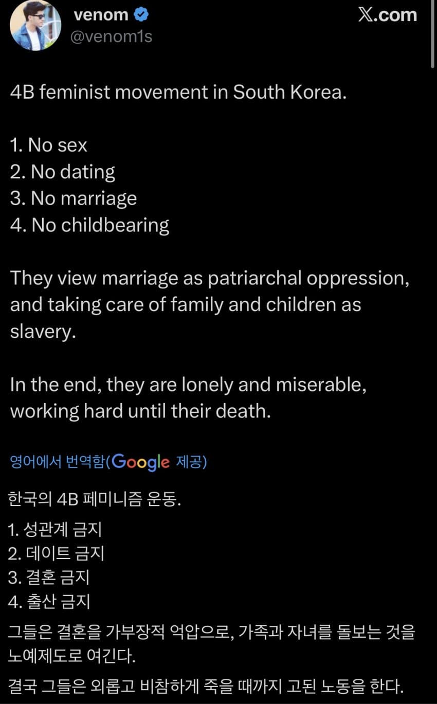 나도 저거 no sex 하나면 되는데 왜 4B운동인지 모르겠더라