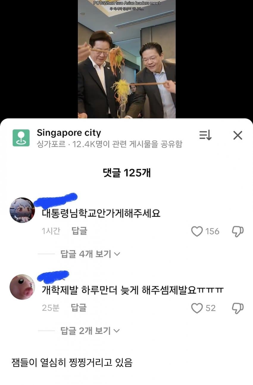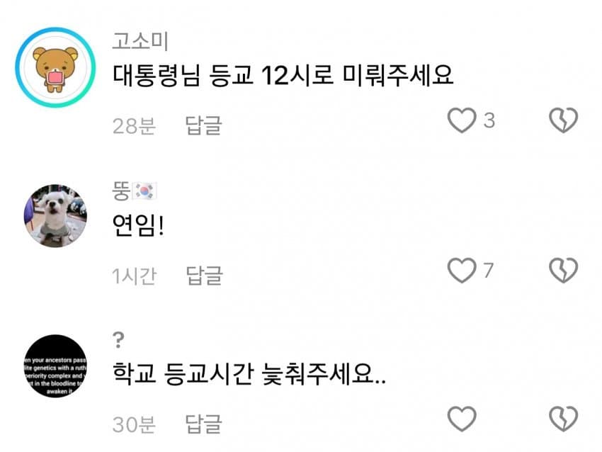 아 대통령 틱톡 댓글창 웃기노
