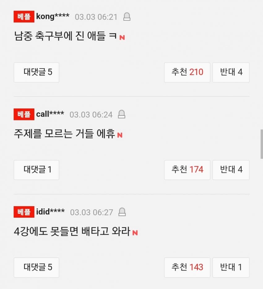 equal pay 주장하는 여자선수들한테 외국인들 유투브 보면. 남자 고등학생한테 여자 국가대표팀들 지니깐 (대부분 중학생팀한테 컷). 남자 고등학생 연봉 받던지. 남자 고등학생이 여자 국대 연봉을 받던지 하자고 하더라. 이퀄 페이 ㄱㄱ!