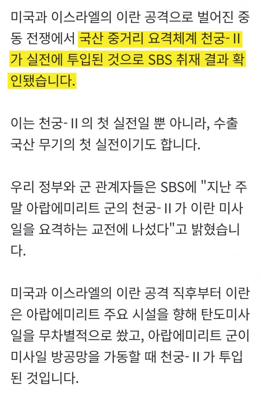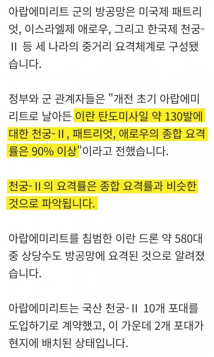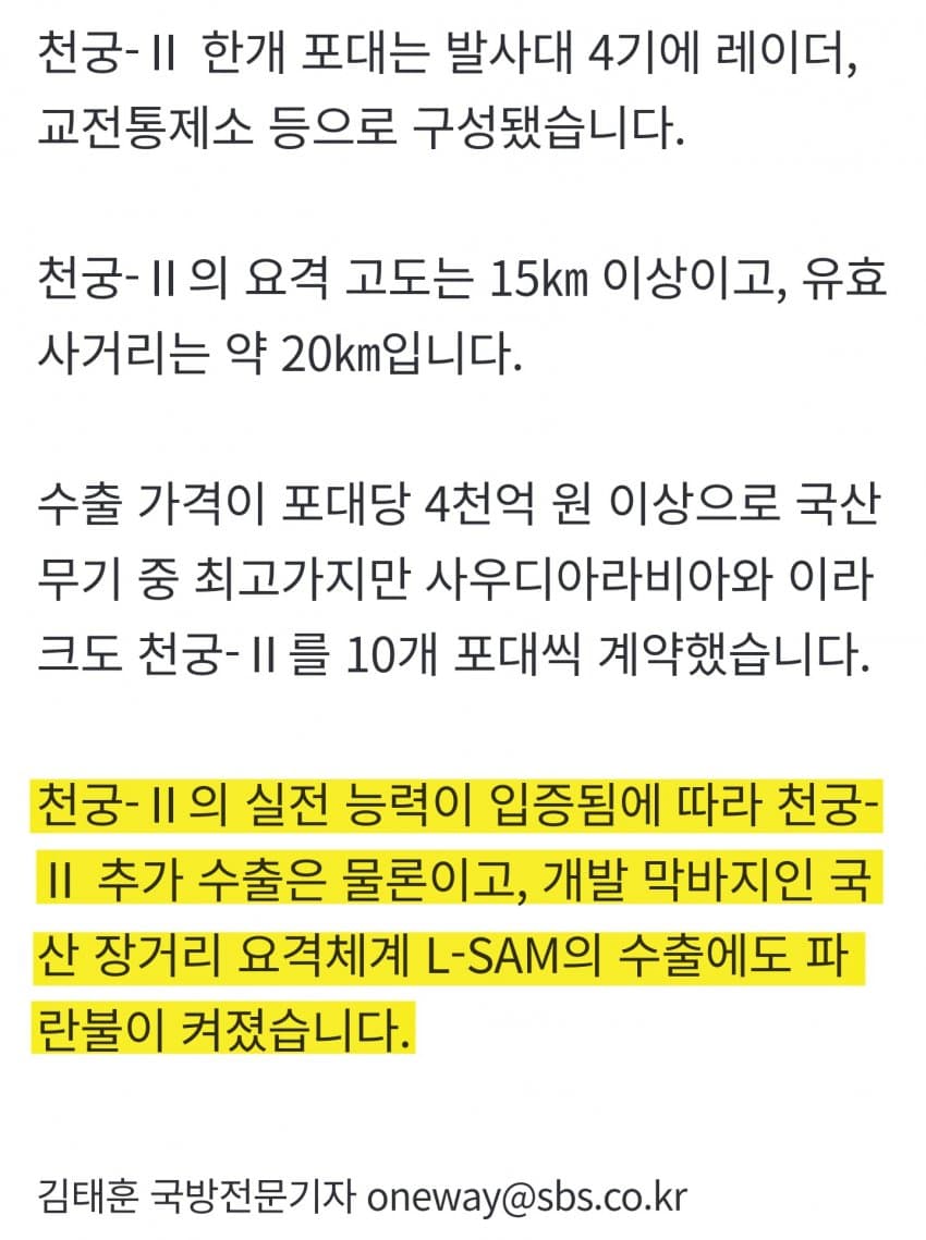한국산 방공 무기 드디어 실전에서 성능 입증됐다는 희소식임