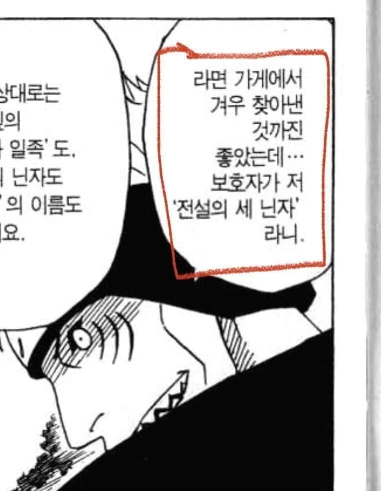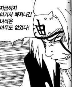 그렇게 잘 빠져 나온 후 나루토를 발견하는데 마침 보호자가 유명한 지라이야