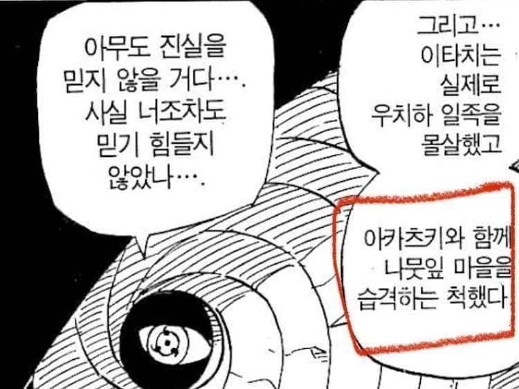 이타치 사생팬 카부토가 이타치는 사람 잘 속이고 스파이로서 거짓말만 치고 죽었다고 말까지 하면서 종결내줌.