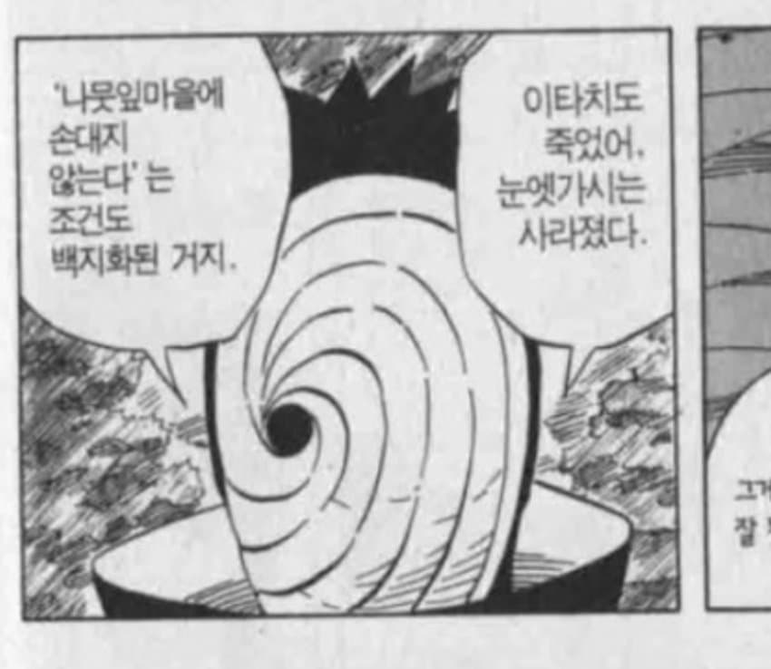 그리고 이터치는 나뭇잎에 손 대지 않는다고 오비토랑 약속하고 아카츠키에 들어간 것.