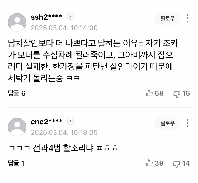 이야 초딩강간살인도 모자라 납치살인까지 하셨겠다??? ㅋㅋㅋㅋㅋㅋㅋ