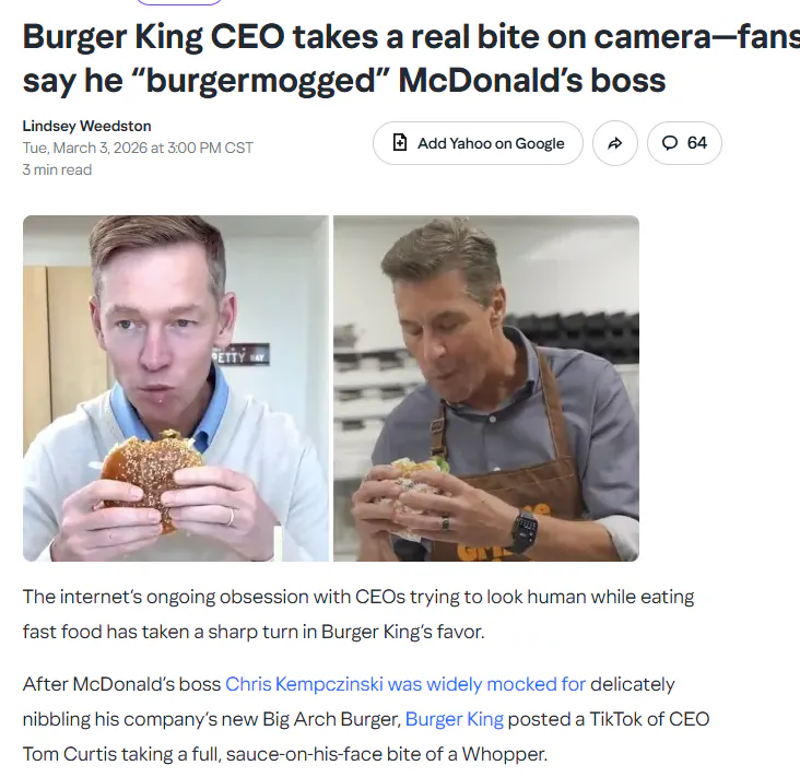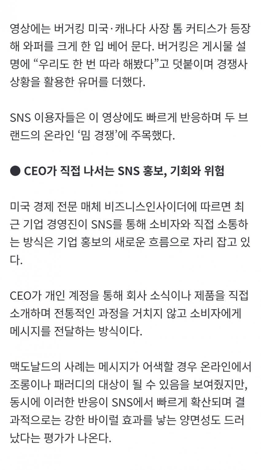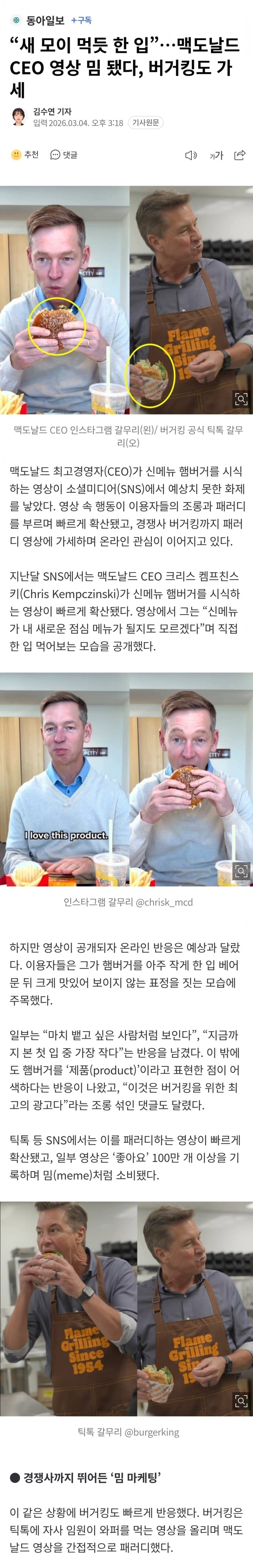 맥도날드 CEO 먹방 답하듯 오늘자 올라온 버거킹 CEO 영상 ㅋㅋ