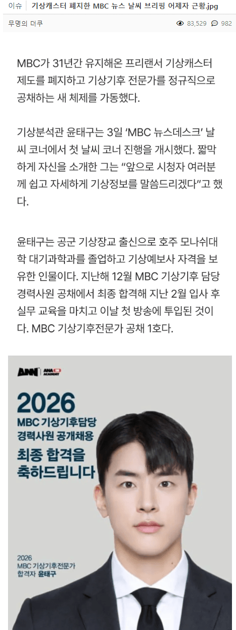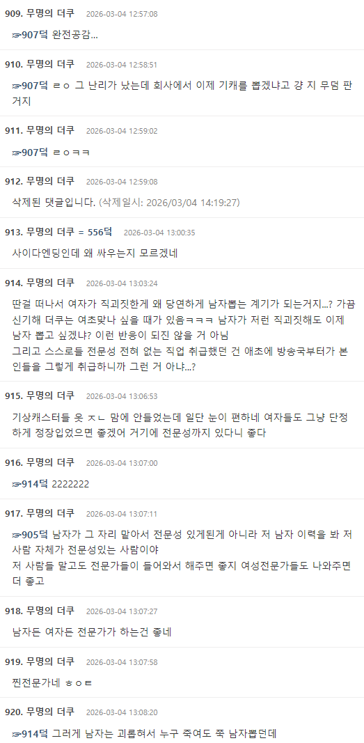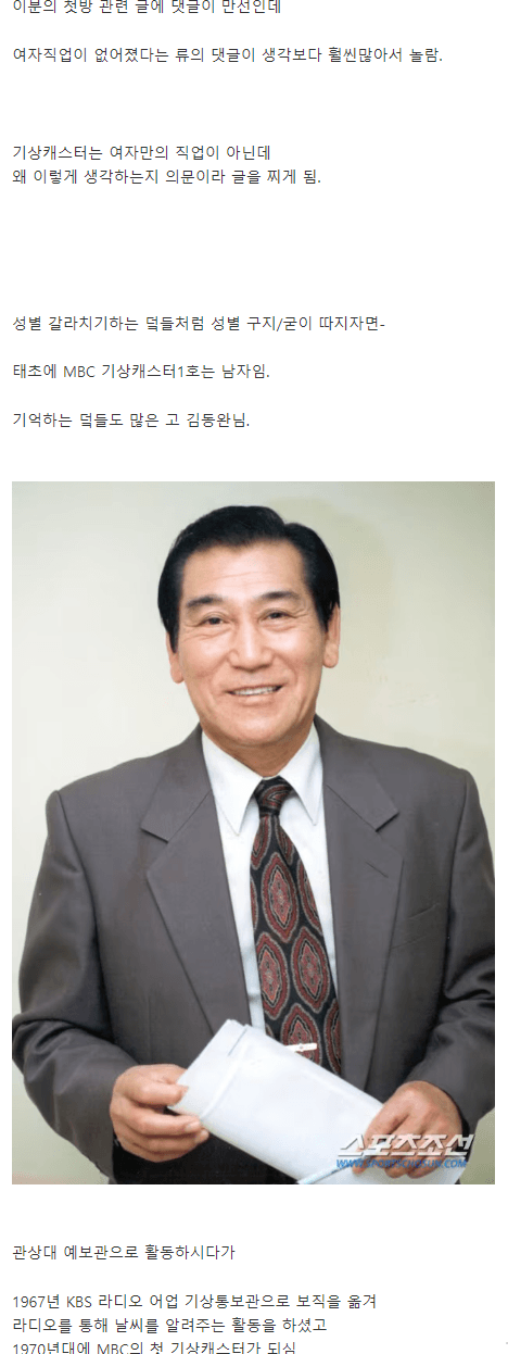 故오요안나님 사건 때문에 기상캐스터가 폐지되고 기상분석관으로 채용된 분이 '남자'라는 이유로 더쿠에서 싸움남ㅋㅋㅋㅋ