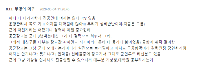 유리천장 어쩌고 저쩌고 하면서 특수직군들에 여자가 없다고 지랄들 하지말고