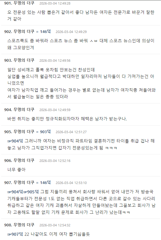 같은 여초에서도 '남자'가 아니라 뽑힌 사람이 남자인 '전문가'라는 얘기라고 싸우는중