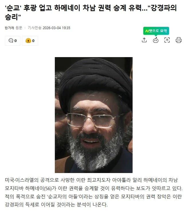 하메네이 장기 독재하며 자국민 수만 학살하며 부정축재한 돈이 무려 150~300조 추정임. 근데 그 많은 돈 써보지도 못하고 일가가 천벌 받고 가는구나. 이란 혁수대가 국방군보다 무장, 정신력 좋은거는 맞지만 미군 앞에서는 그냥 다 고기방패임. 걸프전 때 세계4위권이라던 이라크 공화국수비대(이란전으로 실전 경험도 많았음)도 미군한테 거의 피해도 못주고 수십만이 사상당함. 이란은 항복 외에는 선택지가 없음
