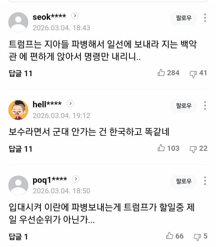 아니 트럼프가 싫어도 지금 이상태에서 어정쩡하게 이란전 끝내면 나중에 더 ㅈ되는거 모르나 ㅋㅋㅋ걍 이렇게된거 이란 그냥 밀어버리는게 나음