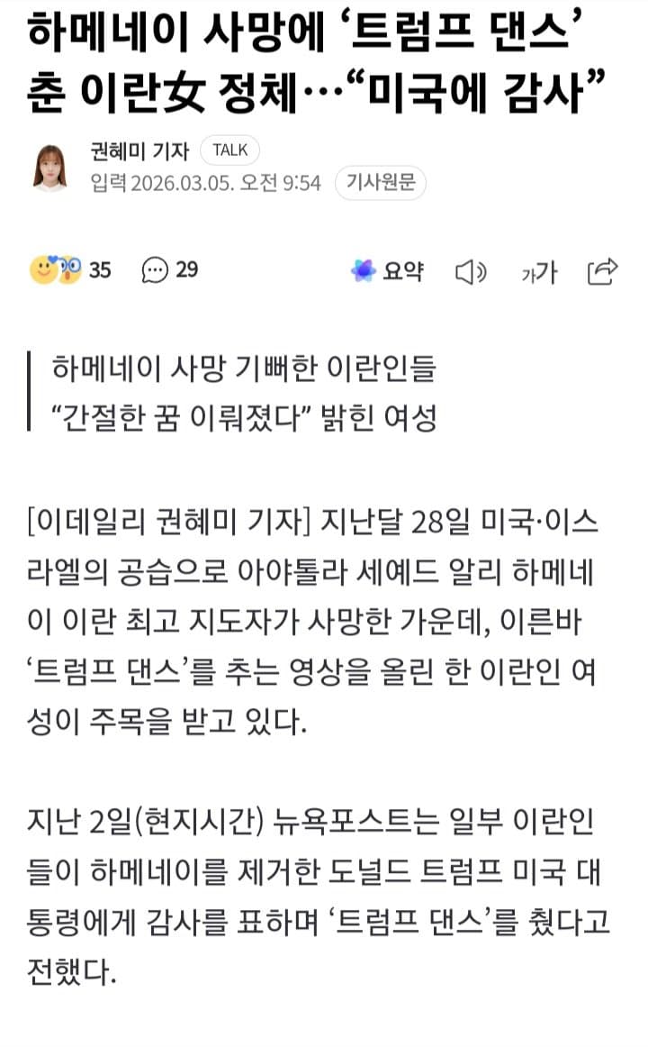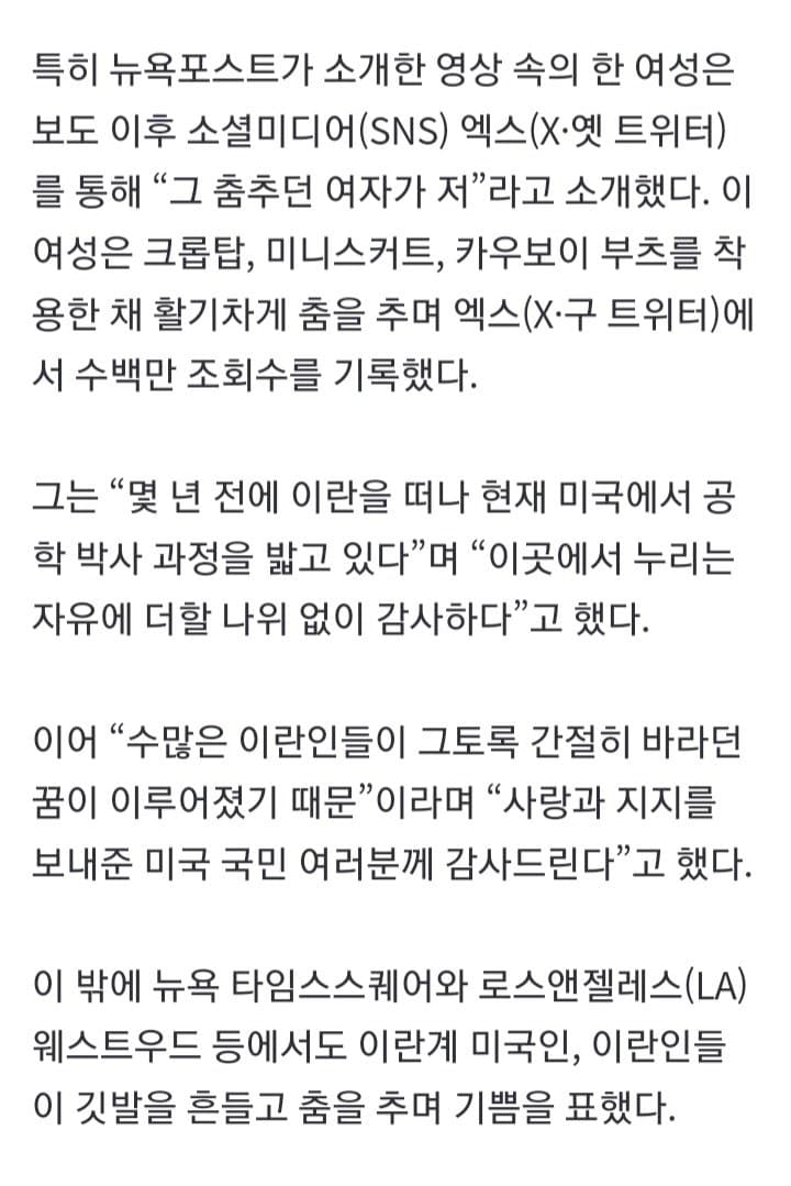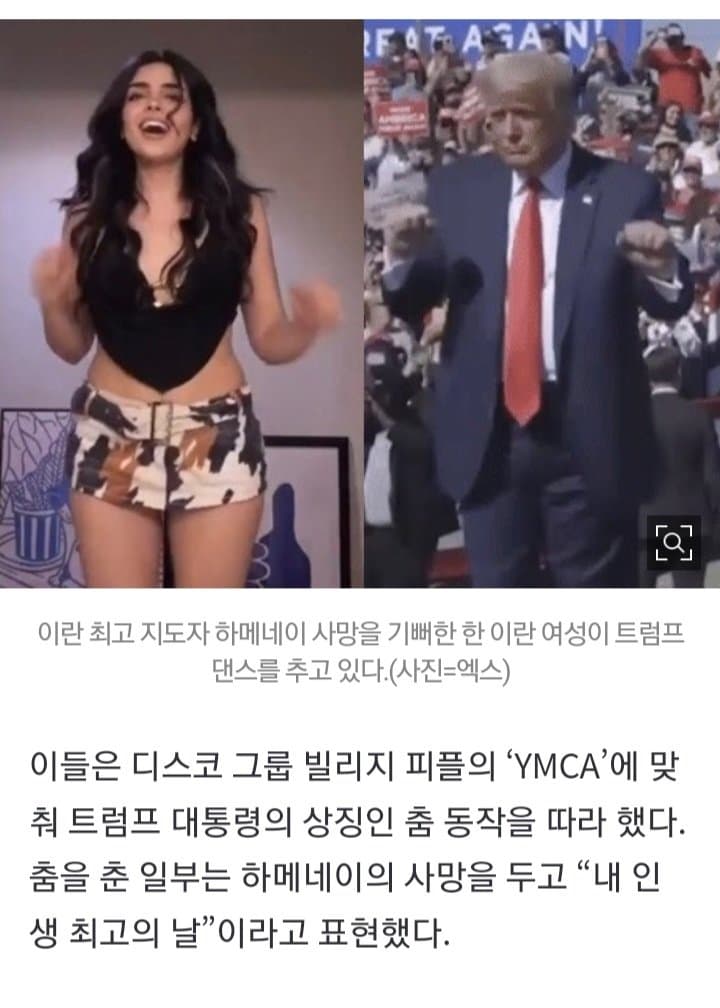 설마 저거 보고 이란 일반인은 미국 좋아하겠지라고 생각하는거냐? 쟤가 댄스추고 난리난건 이란에 살고 있지 않기 때문이다 지금 이란 전국토가 미사일 폭격을 받고있다. 이제는 친미파가 자생적으로 생길수가 없는 환경이다