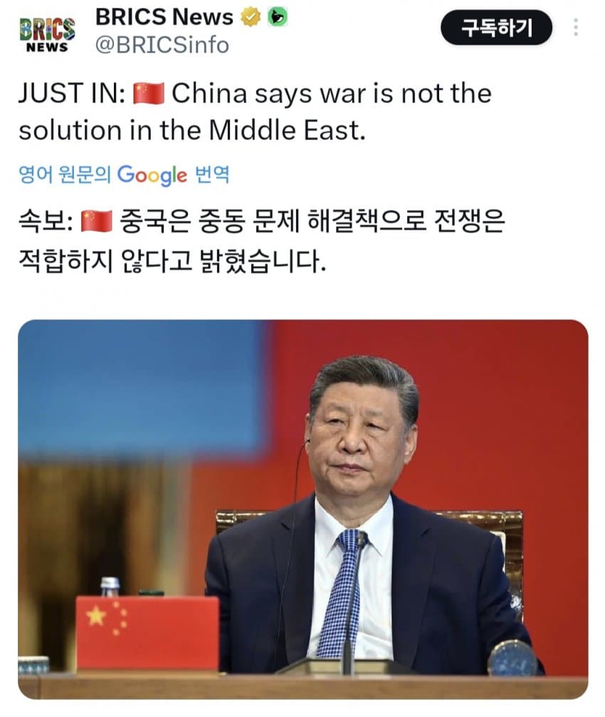 이란 공격에 이스라엘 이권이 엮여있으니까,저기서 우크라이나랑 전쟁 중인 러시아가 이란에 대한 적극적인 우호 행동을 하게 되면,사실상 이스라엘 자본이랑 한 번 해보자는 소리가 될 테니까,러시아는 공식적으로 몇 마디 하는 게 최선이겠지.그리고 중국은 이란보다는 동북아시아 지역이 더 중요할 거고