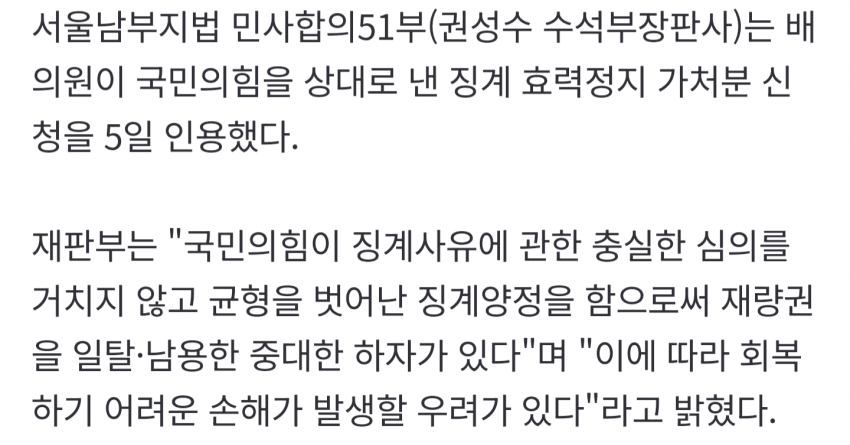 사법부는 기초적인 징계 절차의 적법성만을 따져야지