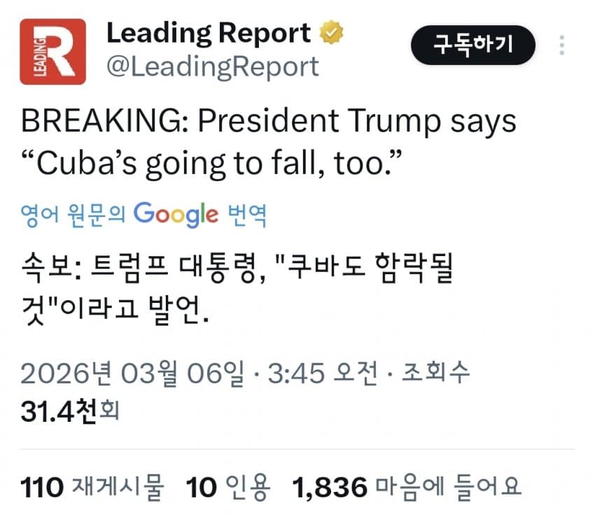 트럼프 "쿠바도 함락될 것"
