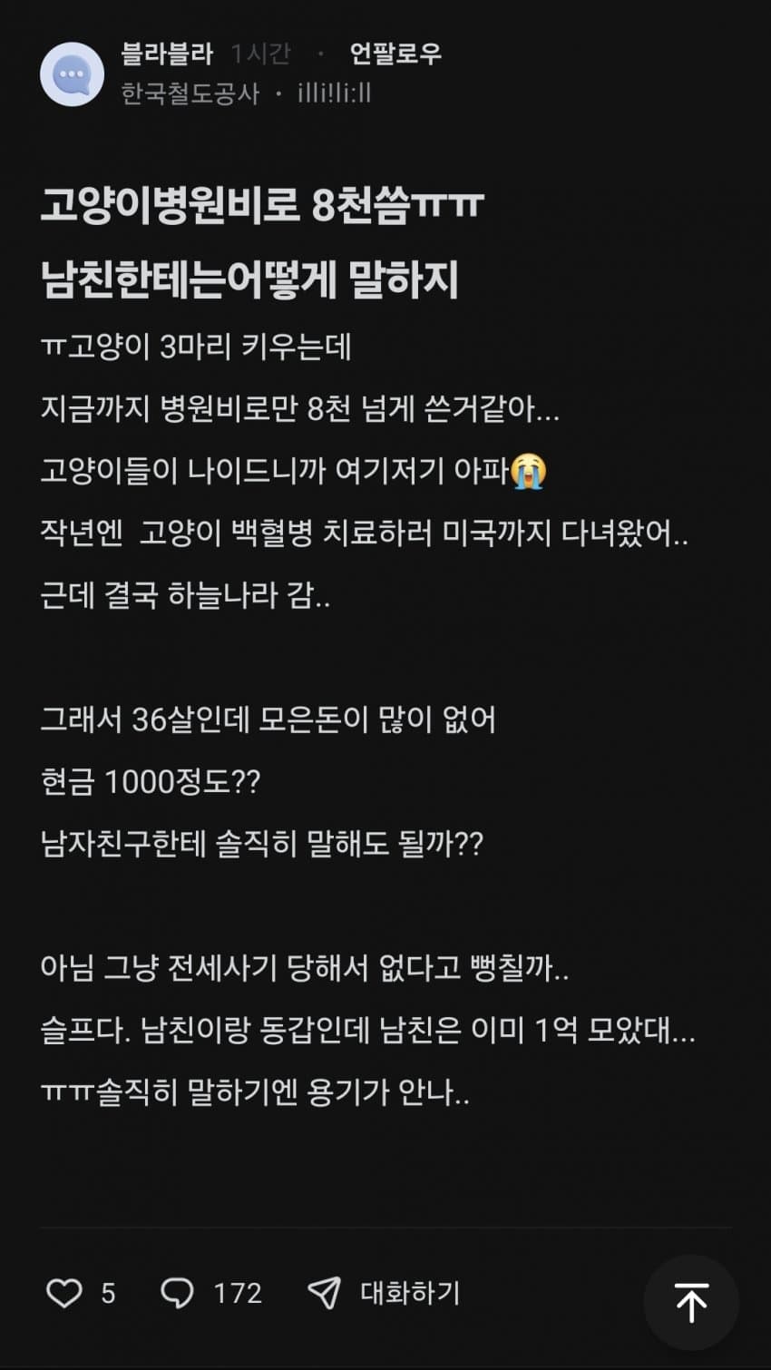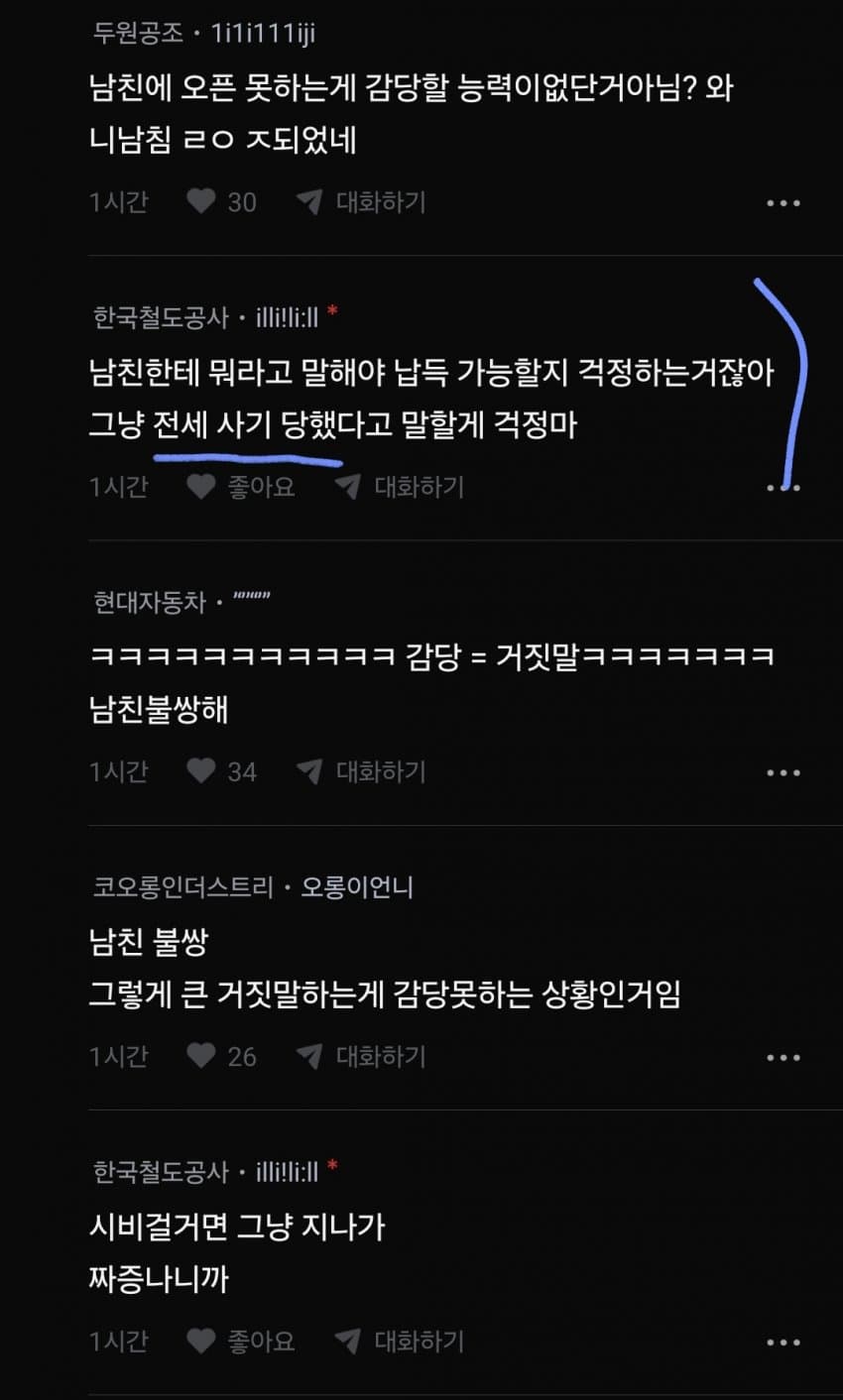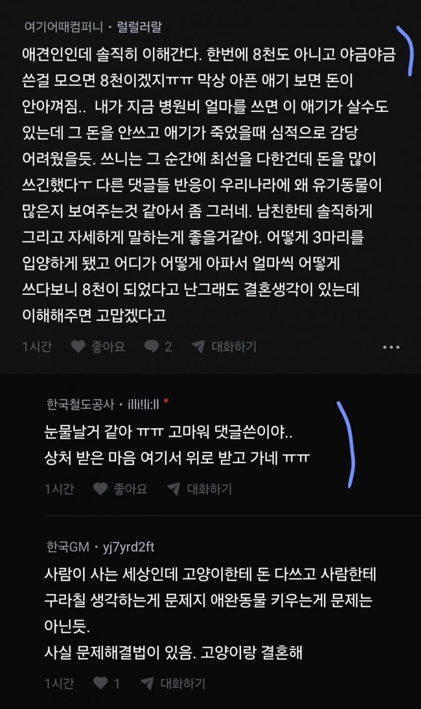 위로하는 댓 그래 여기서 위로받고 남친한텐솔직히 오픈해라